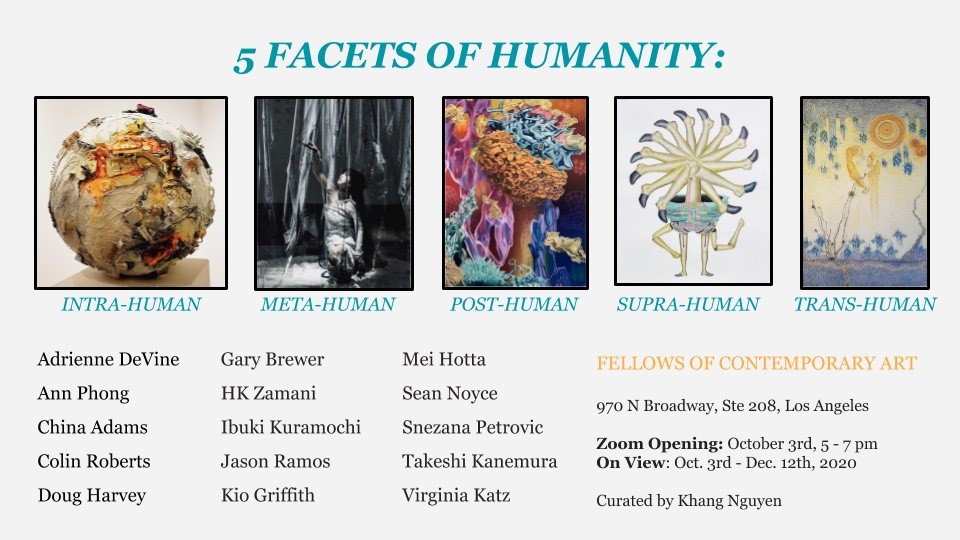 Fellows of Contemporary Art is pleased to present 5 Facets of Humanity: Intra-human, Meta-human, Post-human, Supra-human, Trans-human, an exhibition that investigates five aspects of the idea of a humane humanity.