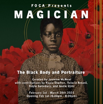 Magician: The Black Body and Portraiture is an exhibition which addresses the depiction of the black form through modern day eyes. It shines light on how contemporary black art and artists simultaneously use and defy the oppressive notions of the past and create a new reality for the depiction of blackness. It brings the past and the present into one space, by showing the ways in which we have created new narratives and visuals in our present, while also highlighting the relationships between spirituality in everyday interactions. The artists in the show highlight aspects of spirituality, originality, and depth, which not only exude from the black body, but fully represent the black community. The artists in Magician use the nuances of color, medium, and their own identification of the black experience to exhibit the spirit of art.