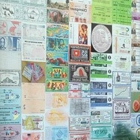 Elana Mann explored the idea of “complementary currencies,” agreements created by communities to fulfill their needs outside of national and international banking structures. Mann collaborated with three communities she is a part of to create a series of new complementary currencies for the exhibition. |
