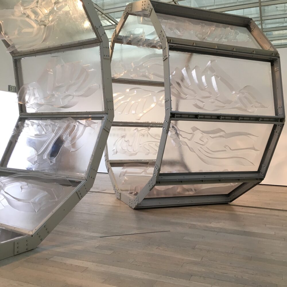 According to LACMA’s wall text, Martinez’s large sculptures feature 3-dimensional representations of 22 settlements in the West Bank that were modeled on planned communities developed in Irvine, CA.  Martinez examines housing developments as a form of state-sponsored residential segregation, demonstrating how the subtle exclusion implied by gated communities is amplified when these structures are transposed to a militarized zone.