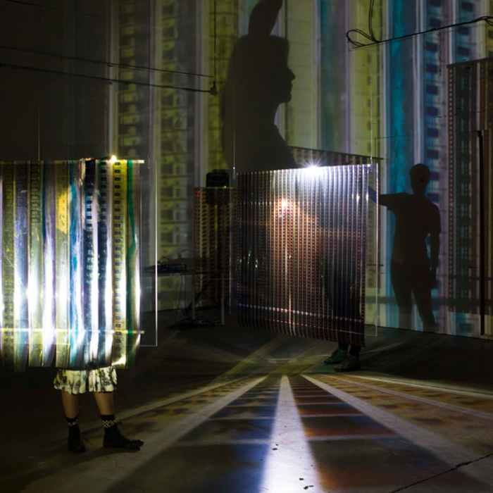 Jennifer West employs various unique processes to produce alchemical transformations in her film based practice. The artist subjects 16, 35 and 70 mm film negative and leader to an eclectic range of idiosyncratic substances including nailpolish, liquid eyeliner, “Teen Spirit” deodorant, wine, spices, Jell-O shots, body glitter, paintballs, Jack Daniels, hot springs water as well as such physical interventions as skateboarding, smearing, crushing, drawing and throwing.